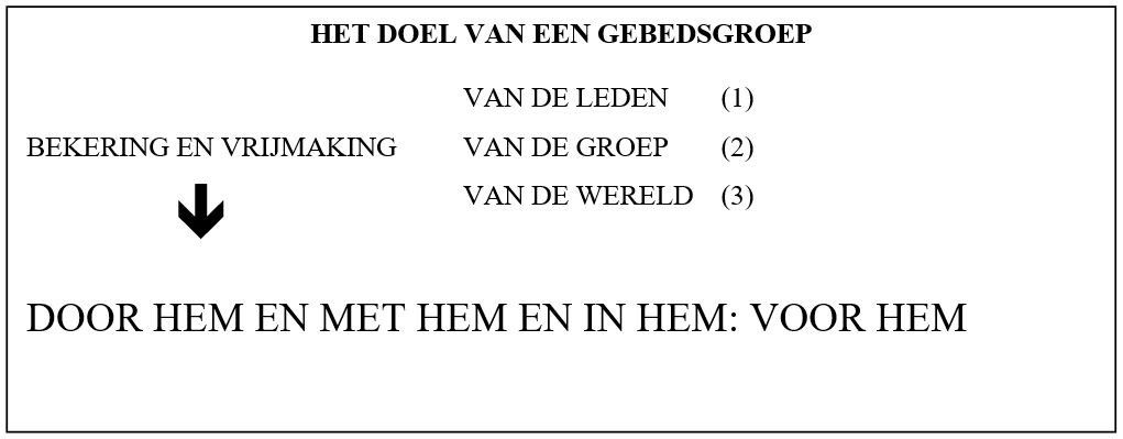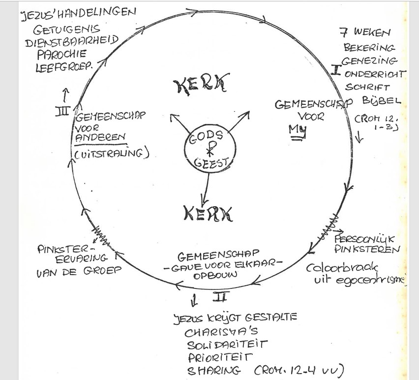 In 1980 werd dit schema van twee pagina's verspreid om de visie en de de rol van gebedsgroep in de Kerk te verduidelijken, met op pagina 2 Hoe loopt een gebedsavond? en Wat doet de stuurgroep?