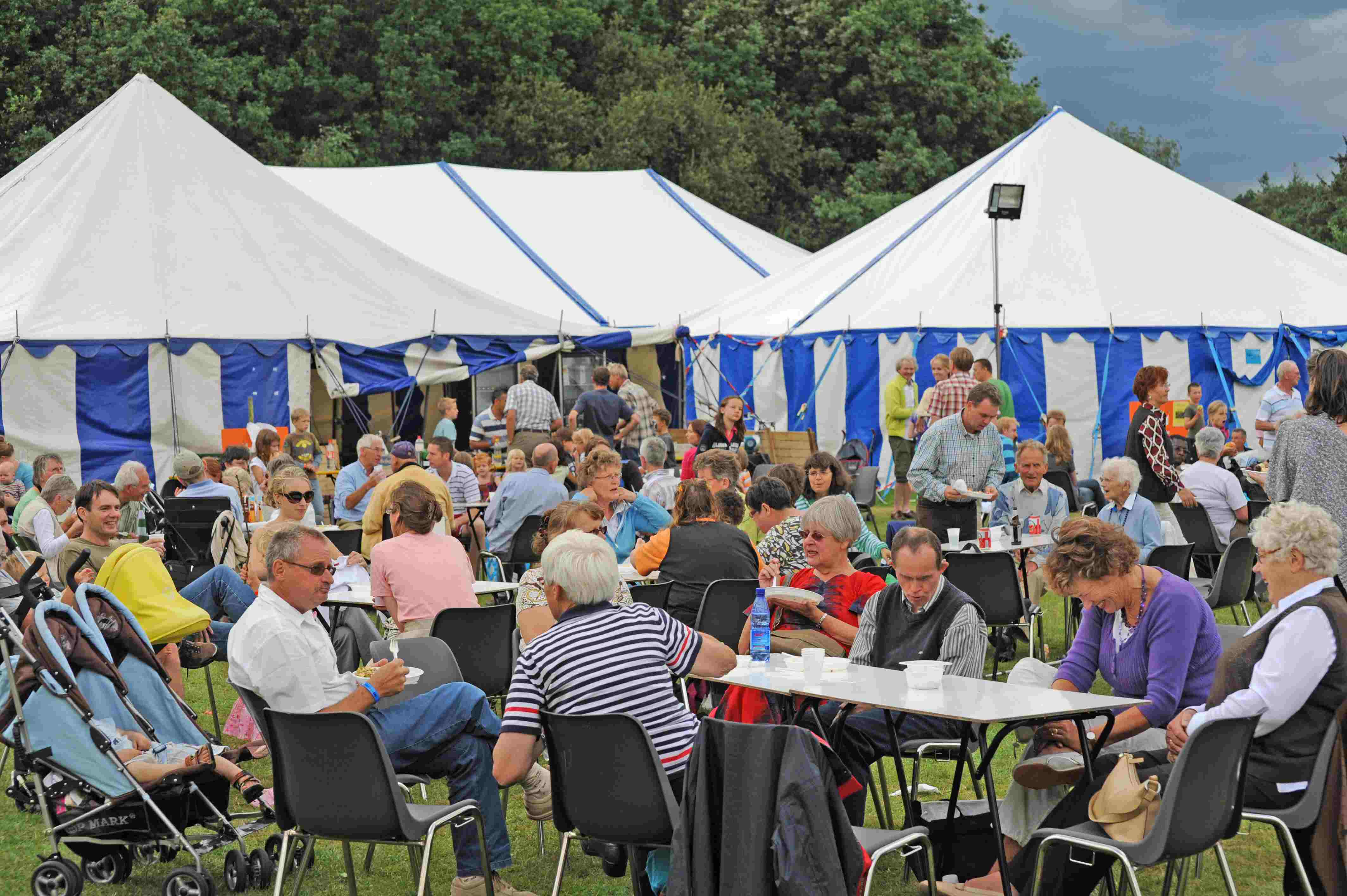 Onverwacht groot was de animo voor een gezamenlijke barbecue op de traditionele vrije dinsdag. Ook Celebrate Tonight, de gezamenlijke maaltijd donderdagavond, was een groot succes en werd ook door daggasten gewaardeerd. De saamhorigheid werd alleen maar versterkt toen iedereen door de hevige regen de tenten in werd gedreven.