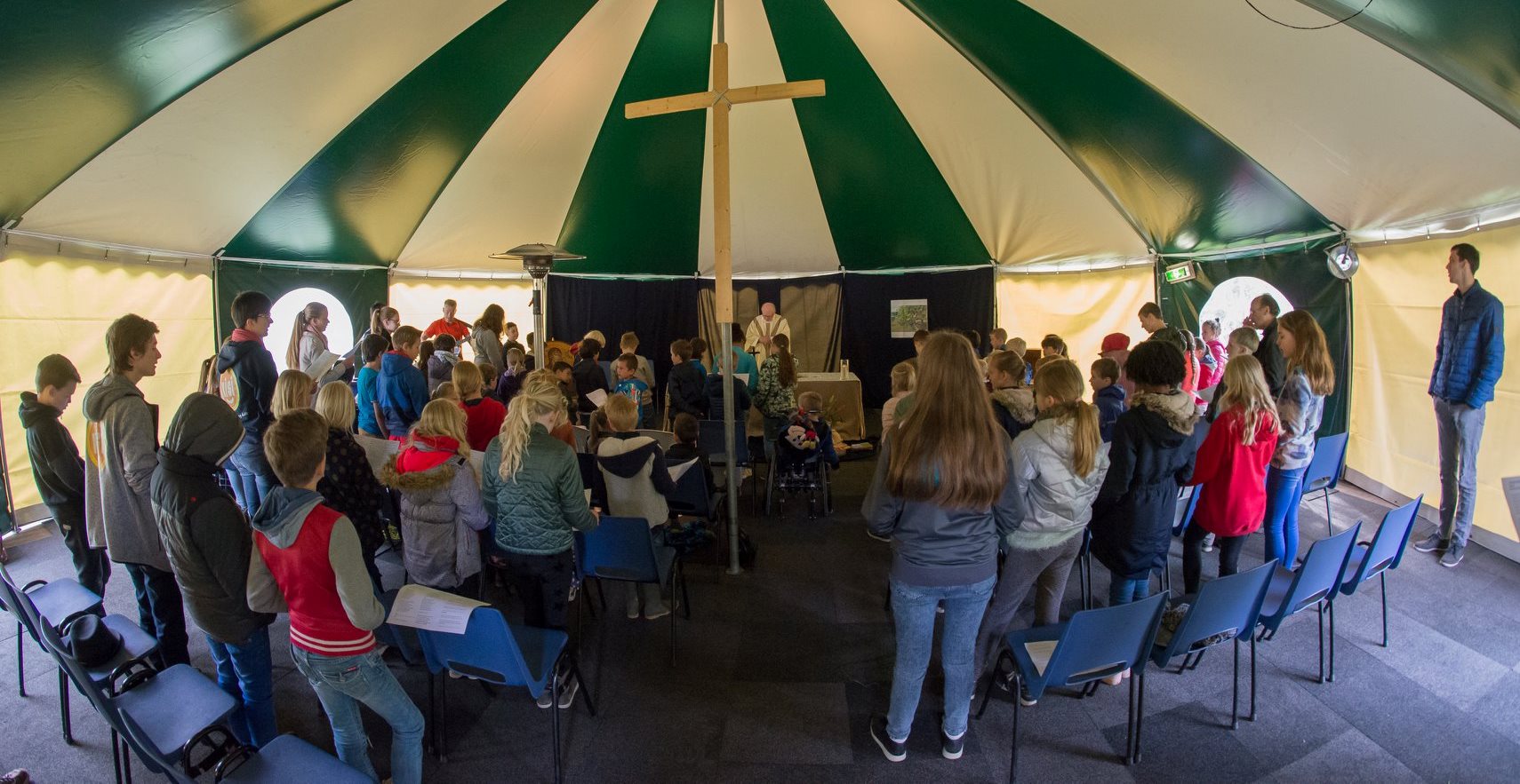 Het grote voordeel van het nieuwe onderkomen voor Celebrate, vakantiepark Pagedal in Stadskanaal, bleek onder meer de grote hal. Voor de meeste bijeenkomsten hoefde geen tent meer te worden opgezet.